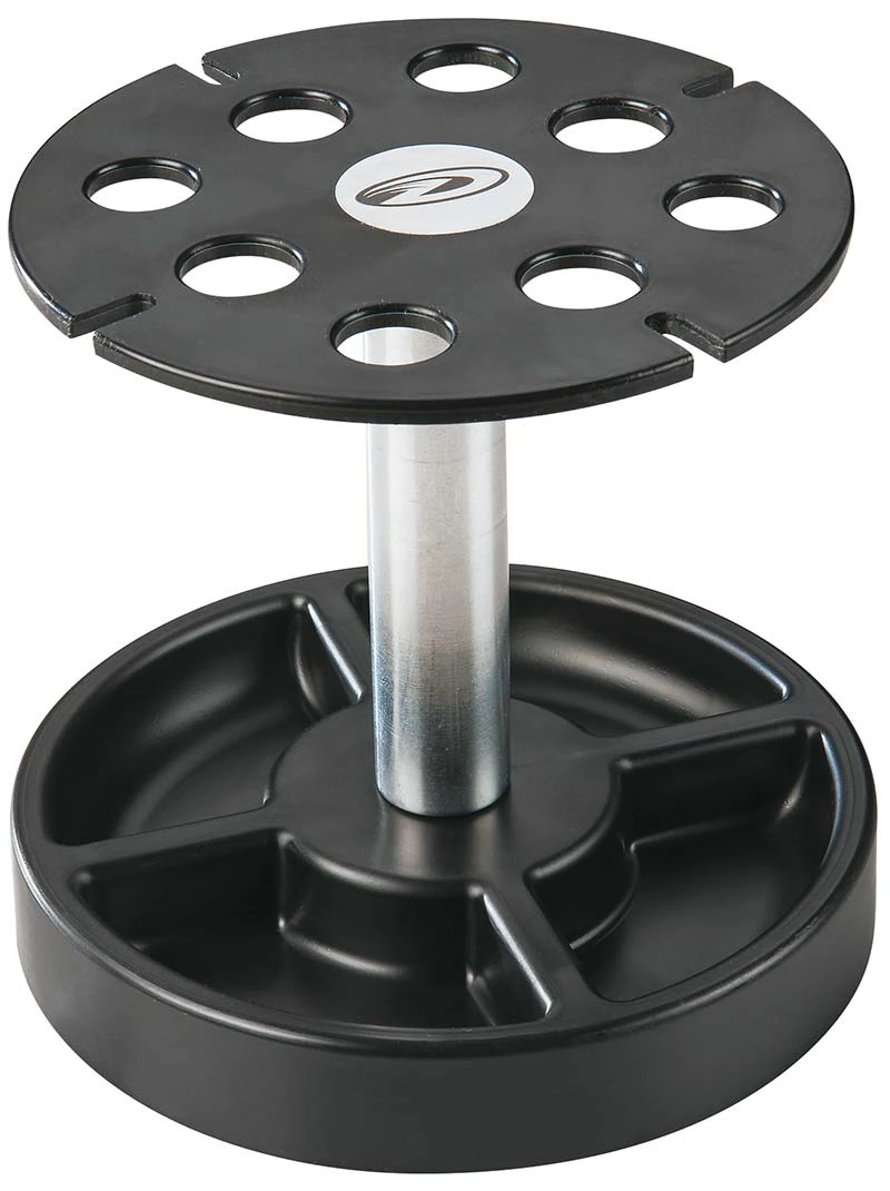 Maintaining your shocks is key to keeping your racer in top shape and the Pit Tech Deluxe Shock Stand is key to keeping your shocks in top shape. It’s made from durable high-impact polystyrene with an aluminum center post, eight holes for 1/10 or 1/8 scale shocks and four slots to hold shocks inverted while the oil drains. The molded base has four compartments for keeping small parts, screws, etc. organized. To keep your workspace as clear as possible, the shock stand can also be disassembled and stored flat.