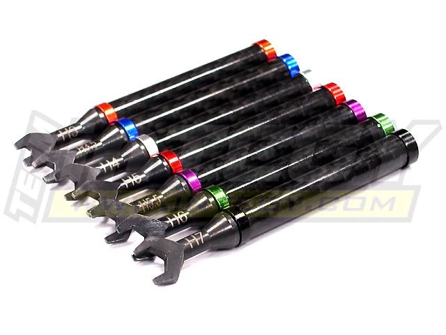 This is the Team Integy Universal Turnbuckle Wrench Set with Carbon Fiber Handles. Includes, 7 wrenches, sizes H3, H3.5, H4, H5, H5.5, H6 and H7.