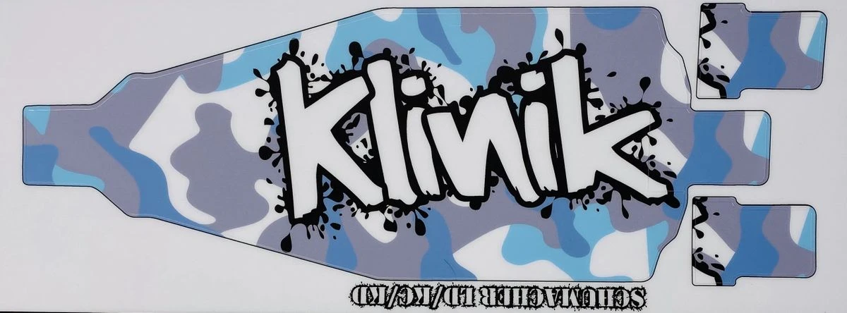 18mil Chassis Protector for the latest Competition Racing Buggies with the Klinik RC Logo and light blue camo! 2 spare rear chassis inserts included!