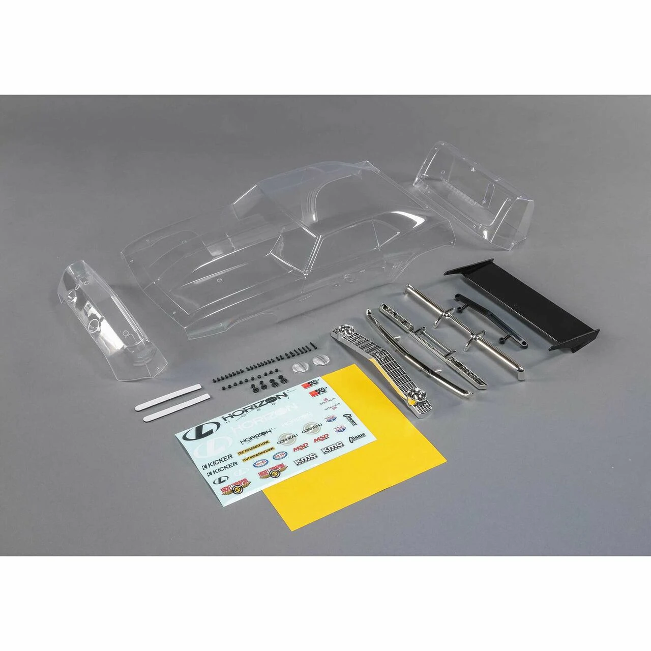 Clear polycarbonate 69 Camaro body set for 22S Drag by Losi.