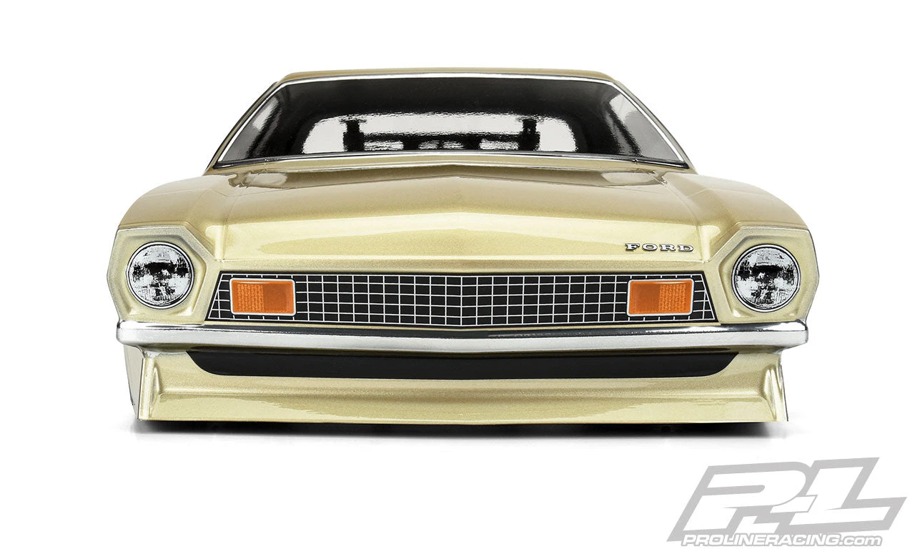 This new size opens the door to bring new people into the world of drag racing using a chassis platform that many people already own. All the iconic details from the original 1972 Pinto have been faithfully recreated in 1/10 size that looks incredible with big drag tires. The front end of the body features massive undercut details including the classic hexagon-shaped headlight bezel just like the full-size car, which is only made possible with Pro-Line’s proprietary molding technology. The body comes clear giving you the option to paint the body however you desire. If you are a Pinto fan or you are ready to try something different, then this is a must-have body for you! Get your own 1972 Ford® Pinto body today!