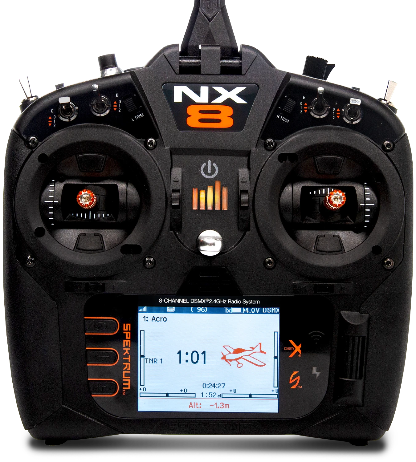 With the Spektrum™ NX8, you’ll enjoy the 8-channel versatility needed to operate your models to their fullest potential and to fly complex aircraft such as EDF jets. And that’s just where its next-generation “NX” series advantages begin. The NX8 also incorporates many of the latest exclusive Spektrum™ innovations for a level of ease, efficiency and performance you’ll find in no other 8-channel transmitter.