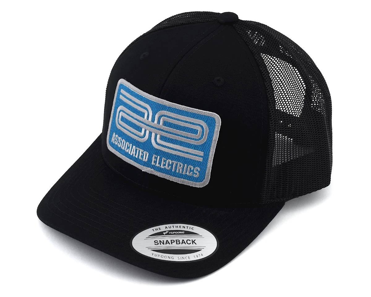 This Team Associated Black AE Logo Trucker Hat with a “Curved Bill.” This open mesh hat keeps the sun at bay while allowing fresh air circulation and cooling. An adjustable snap strap means one-size-fits-all for any Associated Electrics fan. Available in flat bill and curved styles.