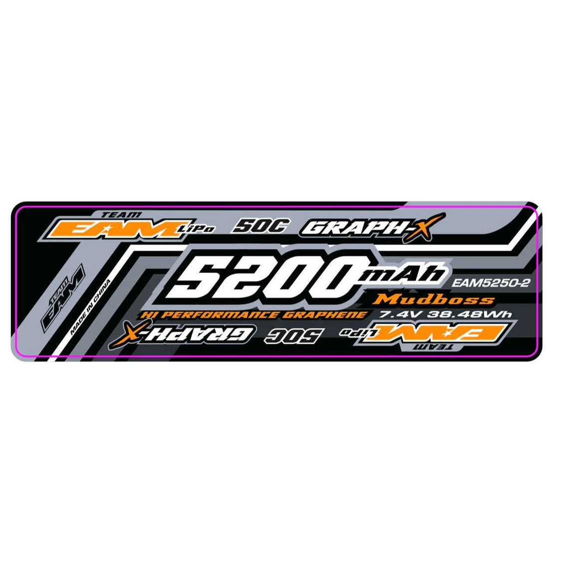 Team EAM 5200 50C Graph-X Mudboss 7.4V 2S LiPo Battery with Deans Connector