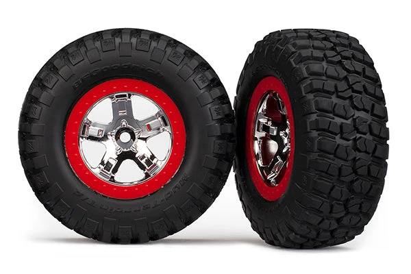 Tires & wheels, assembled, glued (SCT chrome, red beadlock style wheels, BFGoodrich® Mud-Terrain™ T/A® KM2 tires, foam inserts) (2) (2WD front)