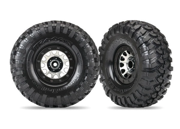 Tires and wheels, assembled (Method 105 2.2” black chrome beadlock wheels, Canyon Trail 5.3×2.2” tires, foam inserts) (1 left, 1 right)