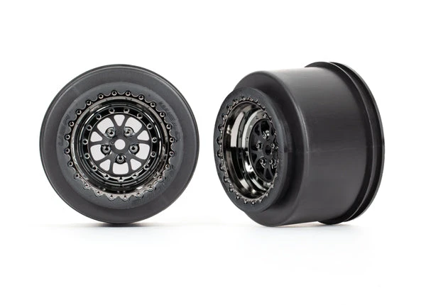 Traxxas 9473X Rear Black Chrome Weld Wheels For Drag Slash 2 Pack