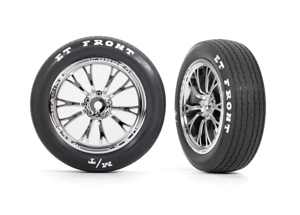 Traxxas 9474R Front Chrome Weld Wheels and MT Tires for Drag Slash