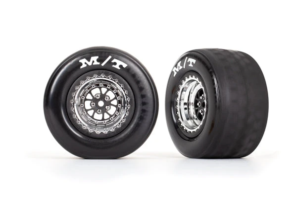 Traxxas 9475R Rear Chrome Weld Wheels and MT Tires for Drag Slash