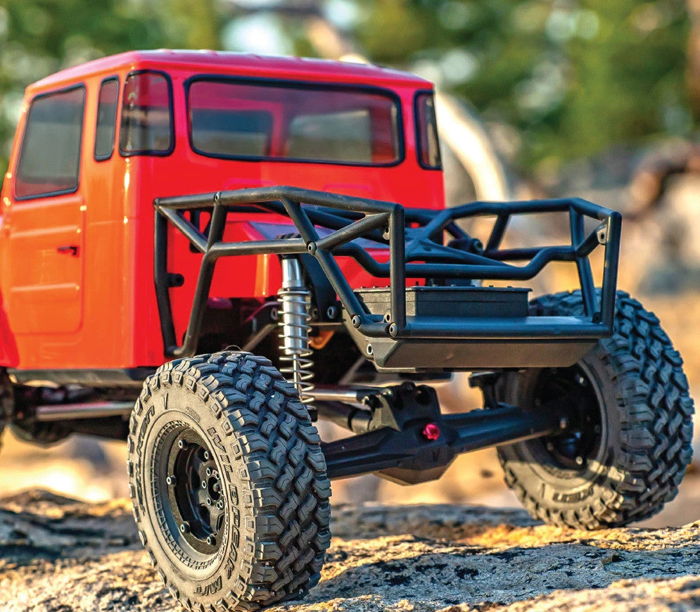 The VS4-10 Phoenix RTR is equipped with features never before offered in a scale RTR of its kind. The VFD Twin incorporates Selectable Overdrive Shifting and 3-position dig ready (servos not included*) into one compact package. The molded F10 Straight Axles utilize a high clearance design which minimizes the size of the pumpkin and maximizes clearance around the C-hub and knuckle. Connecting the VFD Twin to the F10 Axles are the ISD10 driveshafts. The ISD10 Driveshafts have machined CV style joints at each end with molded splined shafts between them for smooth, quiet and efficient performance. The large 8mm bore S8E shocks included dual X-Ring cartridge and scale threaded caps with a sealed upper bleeder screw. S8E preload adjustment is a breeze with the threaded shock bodies and collars.